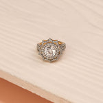 The Striking Silver Floral Ring with Bold Stone Work is a stunning statement piece that blends artistic design with vibrant elegance. Crafted in a polished silver finish, it features a beautifully detailed floral motif highlighted...SKU: CHO26F6816