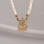 Graceful and timeless, our White Beaded Mala features pristine beads strung with elegance, culminating in a finely crafted Silver Floral Pendant. The pendant’s intricate floral motifs add a touch of delicate charm, making it perfect for both traditional and contemporary attire. Lightweight yet striking, this mala effortlessly enhances your style with its serene beauty, making it an ideal choice for festive occasions, spiritual gatherings, or everyday elegance.