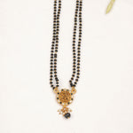 Crafted in 92.5 fine silver with a rich antique finish, this black bead chain features a traditional Ganesh pendant adorned with a striking black drop stone. Symbolising prosperity and grace, the minimalist design exudes timeless elegance. Perfect for daily spiritual wear or festive styling, this piece offers a subtle yet powerful expression of devotion and tradition.