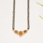 This dual-layered black bead chain is intricately designed in 92.5 fine silver and features a graceful Lakshmi Devi pendant. Embellished with elegant black stones, the piece radiates divine energy and timeless appeal. The antique finish...SKU: CHO26E12012