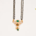 Expertly handcrafted in 92.5 fine silver, this black bead chain features a radiant Lakshmi Devi pendant embellished with vibrant green stones. The antique finish lends a traditional touch, while the green accents symbolize prosperity and...SKU: CHO26E12000