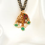 This Stepped Black Bead Chain with a Silver Peacock Pendant is a stunning piece that effortlessly combines tradition and modern style. The intricately designed silver peacock pendant is adorned with vibrant kundans and stone hangings,...SKU: CHO26E12340