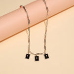 The Silver Link Design Chain with Stone Pendants is a refined blend of modern style and subtle elegance. Crafted in a polished silver finish, the chain features sleek link detailing accented with delicately set stone pendants that add gentle sparkle and charm. The clean, contemporary design makes it ideal for everyday wear or effortless layering. Lightweight and comfortable, this chain pairs beautifully with casual, office, and modern outfits, adding a touch of sophistication to your jewelry collection.
