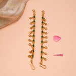 Graceful and vibrant, this Silver Champaswaraalu is crafted in 92.5 fine silver and adorned with rich green Kundan stones and elegant gold-toned beads. The intricate design adds a regal touch, making it perfect for weddings, temple ceremonies, and classical dance. A stunning blend of colour, tradition, and craftsmanship, this piece elevates any ethnic ensemble beautifully.