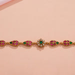 Sleek Silver Bracelet with Coloured Kundan Highlights
