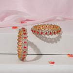The Silver and CZ Bangles with Dazzling Pink Stones are a perfect blend of elegance and modern charm. Crafted with a sleek silver finish, these bangles are embellished with high-quality cubic zirconia that adds radiant sparkle. The vibrant pink stones bring a pop of color, enhancing their luxurious appeal. Ideal for festive occasions, weddings, and parties, they complement both ethnic and contemporary outfits. Lightweight and comfortable, these bangles are designed for effortless wear while making a stylish statement, adding grace, brilliance, and refined beauty to your jewelry collection.