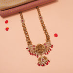 The Sleek Silver Long Haaram with Lakshmi Devi Design is a refined blend of traditional symbolism and modern elegance. Crafted in a smooth silver finish, it features a beautifully detailed Goddess Lakshmi Devi motif representing...SKU: CHO26G56934