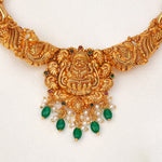Celebrate divine elegance with this handcrafted 92.5 fine Silver Lakshmi Devi Necklace, featuring an intricately detailed goddess pendant. Adorned with vibrant stone bead hangings, this piece blends traditional artistry with spiritual grace. Perfect for festive occasions or temple wear, it adds a sacred charm to any outfit. A timeless addition to your jewelry collection, radiating blessings and beauty.