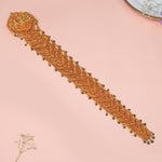 This traditional gold-plated silver Jada is meticulously crafted for weddings, featuring intricate designs that exude elegance and cultural charm. The rich gold plating and fine craftsmanship and the tiny pearls make it a timeless accessory, perfect for brides and special occasions.