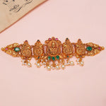 Embrace divine elegance with this Silver Temple Lakshmi Devi Bhaajubandh, crafted in 92.5 sterling silver. Featuring intricate depictions of Goddess Lakshmi, symbolising prosperity, the piece is adorned with delicate pearl hangings and stunning stone work,...SKU: CHO26E12610
