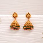 Elevate your traditional look with these Temple Silver Jhumkas, crafted in 92.5 fine silver and adorned with vibrant ruby potas. Featuring intricate temple-inspired motifs, these earrings blend spiritual artistry with rich colour, making them perfect...