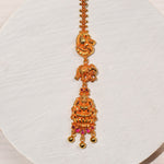 Adorn your crowning glory with our Temple Silver Maang Tikka, a masterpiece of divine artistry. Featuring intricate motifs of Lakshmi Devi, elephants, and peacocks, this piece symbolizes prosperity, strength, and beauty. Crafted in antique-finish silver, it radiates traditional elegance, making it perfect for weddings, festive occasions, and cultural ceremonies. Rich in heritage and exquisite in detail, this maang tikka beautifully enhances your traditional ensemble with grace and grandeur.