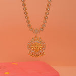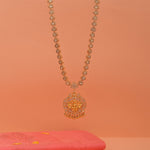 The Simple Kundan Silver Haaram with Divine Lakshmi Pendant is a graceful blend of traditional devotion and understated elegance. Crafted in a refined silver finish, it features subtle kundan accents that add a touch of...SKU: CHO26I4501