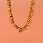 The Silver Mango Haaram is a timeless piece inspired by classic temple jewelry traditions. Crafted in a refined silver finish, it features the iconic mango (maanga) motifs symbolizing prosperity and auspiciousness. The elegant arrangement of these motifs creates a rich and graceful look, reflecting heritage craftsmanship. Ideal for weddings, festive occasions, and traditional celebrations, this haaraam pairs beautifully with silk sarees and ethnic attire, adding a regal and culturally rich touch to your jewelry collection. ✨