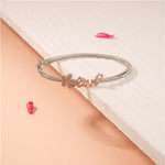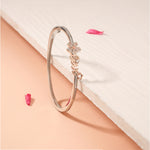 Trendy Silver Kada with Floral HIghlight and Engraved Love in Rose Gold Polish