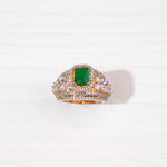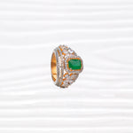 A bold blend of opulence and tradition, this 92.5 fine silver ring features a striking green emerald stone at the center, encased in a detailed setting of shimmering cubic zirconia.SKU: CHO26F6473