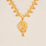 This fancy silver necklace features a stylish matte gold finish, blending traditional elegance with a modern twist. Crafted in 92.5 silver, its sleek design makes it a versatile accessory for festive events or everyday wear. A perfect piece to add subtle sophistication and charm to any outfit.