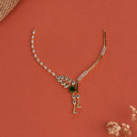 Partywear Silver Necklace with CZs, Emeralds, and Leaf Design
