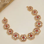 Silver Floral Design Necklace with Signity Stones and Rubies