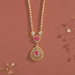 This sleek silver necklace is adorned with sparkling cubic zirconia stones and vibrant ruby highlights. Crafted in 92.5 silver, its elegant design combines modern simplicity with a touch of color, making it perfect for both...