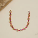 This sleek silver necklace is adorned with vibrant rubies and radiant kundans, adding a touch of elegance and charm to its minimalist design. A perfect fusion of classic and contemporary style, ideal for elevating any...SKU: CHO26E12260