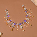 This Captivating Floral Silver Necklace with CZs and Pearl Hangings from Padmam 92.5 Fine Silver Jewellery blends timeless elegance with delicate charm. Crafted from 92.5 pure silver, it features intricate floral motifs adorned with sparkling...SKU: CHO26H41917