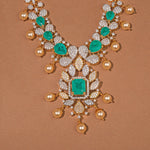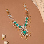 This Elegant Silver Necklace with CZs, Green Moissanite Stones, and Pearls from Padmam 92.5 Fine Silver Jewellery exudes timeless sophistication. Crafted from 92.5 pure silver, it features sparkling Cubic Zirconia accents, vibrant green Moissanite stones,...SKU: CHO26H41980