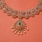 Embrace the allure of timeless elegance with our stunning Floral Silver and CZ Necklace, expertly crafted from 92.5 fine silver. Adorned with exquisite floral motifs, dazzling CZ stones, and lustrous pearls, this necklace beautifully marries classic charm with contemporary sophistication. this masterpiece enhances any ensemble with its enchanting radiance and poised beauty. It epitomizes exceptional craftsmanship and refined artistry, making it a luxurious statement piece that embodies grace and timeless luxury.