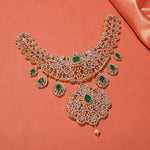 Exude timeless elegance with this Graceful Floral and Leaf Design Silver Necklace, meticulously crafted in 92.5 fine silver. Intricate floral and leaf motifs are adorned with sparkling CZ stones, creating a harmonious blend of sophistication and charm.This necklace adds a touch of refined grace to any ensemble. It reflects exceptional craftsmanship, enduring beauty, and luxurious artistry.