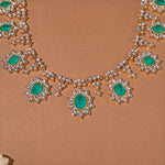 This Radiant Silver Necklace with CZs and Green Moissanite Stones from Padmam 92.5 Fine Silver Jewellery exudes elegance and luxury. Crafted from 92.5 pure silver, it features sparkling Cubic Zirconia accents paired with vibrant green...SKU: CHO26H42070