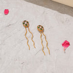 Add a regal touch to your hairstyle with these Silver Hair Pins featuring Green Kundan Highlights. Handcrafted in 92.5 fine silver, each pin is adorned with radiant green kundans that lend a subtle pop of colour and elegance. Perfect for festive celebrations, bridal looks, or graceful everyday styling.