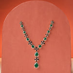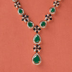 Indulge in refined elegance with this Silver Stone Studded Necklace, exquisitely handcrafted in 92.5 fine silver. The intricate floral artistry flows seamlessly into a graceful drop design, adorned with shimmering stones that exude radiance and sophistication.Each detail reflects masterful craftsmanship and timeless allure,this necklace captures the essence of opulence and enduring beauty a true statement of prestige and grace.