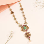 This sleek silver haaram, crafted in 92.5 fine silver, features sparkling kundan stones set against a beautifully aged antique finish. Combining contemporary elegance with traditional charm, it’s perfect for both festive occasions and everyday wear. Lightweight yet striking, this versatile piece adds a refined, timeless appeal to your jewellery collection.