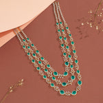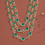 Make a bold style statement with this 92.5 fine silver stepped Haaram, beautifully crafted with sparkling CZ stones. The unique stepped design gives it a modern twist, while the emerald highlights add a touch of rich elegance. Perfect for weddings, festivals, or any special occasion that calls for timeless charm.