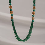 Radiate traditional grace with our Green Beaded Haaram, exquisitely paired with Antique Silver Nakshi Beads. The rich green beads bring a vibrant touch, while the intricately crafted Nakshi silver elements reflect timeless artistry and heritage. Ideal for weddings, festive occasions, and cultural ceremonies, this haaram beautifully blends color, tradition, and elegance—making it a standout piece that captures the essence of South Indian craftsmanship and regal charm.