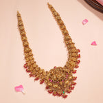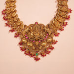 Make a grand impression with this Heavy Silver Long Haaram with Lakshmi Devi Details, exquisitely handcrafted in 92.5 fine silver. Featuring intricately detailed motifs of Goddess Lakshmi, this opulent haaram reflects divine grace and traditional...SKU: CHO26G58948