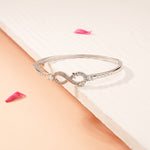 Designed in 92.5 fine silver, this sleek infinity kada is a symbol of timeless elegance and endless style. Accented with shimmering CZ stones, its graceful silhouette adds just the right touch of sparkle. Perfect for everyday wear or special moments, this kada is a refined expression of love, strength, and sophistication.