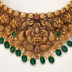 Celebrate tradition with this Antique 92.5 fine silver Lakshmi Devi choker, beautifully detailed and adorned with elegant stone beads. This classic piece combines divine charm with timeless craftsmanship, making it perfect for festivals, religious events,...SKU: CHO26E8677
