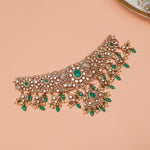 Make a statement with this stone-studded silver choker that’s all things bold and beautiful. Crafted in 92.5 sterling silver, it’s adorned with shimmering kundans and finished with elegant emerald beads for that perfect pop of colour. The intricate design blends traditional charm with a modern edge, making it the ideal pick for weddings, celebrations, or whenever you feel like turning heads. Style it solo or layer it—either way, you’ll shine.