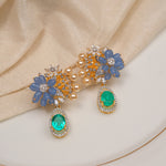 Enhance your elegance with these Silver Floral Earrings, crafted with intricate floral motifs and adorned with sparkling Moissanite stones. A delicate pearl drop complements the brilliance, creating a graceful blend of shimmer and sophistication. Perfect for festive occasions, weddings, and special events, these earrings offer a timeless charm that suits both traditional and contemporary looks. Elevate your jewelry collection with this stunning combination of beauty, artistry, and refined craftsmanship.