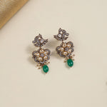These Victorian emerald earrings showcase an exquisite peacock stud design, adorned with lustrous pearls and vibrant emeralds. A graceful fusion of heritage elegance and timeless beauty, perfect for special occasions and traditional celebrations.