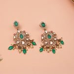 Silver Victorian Earrings with Kundans and Emeralds, meticulously crafted in 925 silver, exude timeless elegance. The intricate kundan work, paired with vibrant emerald accents, adds a regal touch, making these earrings a perfect choice for grand occasions and festive celebrations.