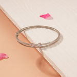 Radiate timeless charm with this elegant silver kada, crafted in 92.5 fine silver and adorned with sparkling CZs and luminous white stone highlights. Its graceful design and subtle shimmer make it a perfect accessory for both everyday wear and special occasions. Sophisticated yet understated, this kada adds a refined touch to any jewellery collection.