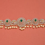 Grace your festive attire with this Sleek Silver Vaddanam with CZs and Pearls, exquisitely crafted in 92.5 fine silver. Adorned with sparkling cubic zirconia stones and elegant pearl accents, this waist belt adds a touch of regal charm and sophistication. Perfect for weddings and traditional occasions, it’s a statement piece that blends heritage with modern elegance.