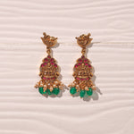 SIlver Lakshmi Earrings with Stone Bead Hangings and Kundans