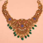 Intricately Crafted SIlver Necklace with Elephamt and Peacock Design