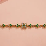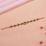 Leaf Design Silver Bracelet with Green Kundans
