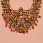 The Long Antique Silver Necklace with Lakshmi Devi Design and Stone Beads is a magnificent temple-style ornament reflecting divine elegance and heritage craftsmanship. Featuring a finely detailed Goddess Lakshmi Devi motif symbolizing prosperity and blessings, the necklace is beautifully complemented by carefully arranged stone beads that add richness and depth. Crafted in an antique silver finish with intricate detailing, this long necklace is ideal for weddings, festive occasions, and ceremonial wear. It pairs gracefully with silk sarees and traditional attire, making it a timeless statement of devotion and classic elegance.