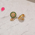 Radiant Sun Design Silver Earrings with Green and White Kundans